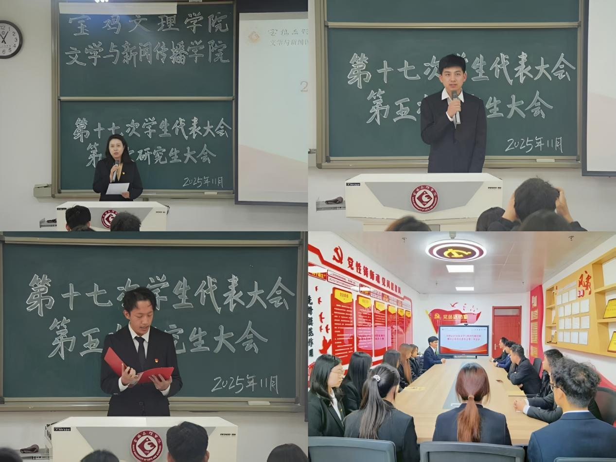 11月14日,我院在高新校区博文楼6层教室召开了宝鸡文理学院文学与新闻传播学院第十七次学生代表大会、第五次研究生大会。会议由学院学生会学生干部主持。