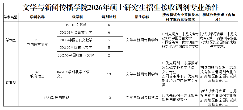 根据《宝鸡文理学院2026年硕士研究生招生调剂公告》,结合学院实际,现就调剂相关事项公告如下: