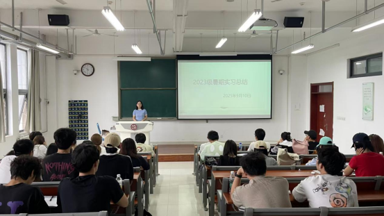 何艳萍充分肯定了大家的暑期实习成果,也号召大家互相学习。同时也指出了在沟通能力、时间管理、专业技能等方面存在的不足,并鼓励大家继续努力,将实习中发现的问题带回课堂,融入学习过程,形成反馈与指导机制,从而在知识积累、社会融入和技能提升方面实现更大突破。