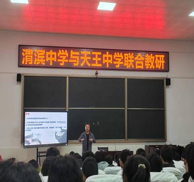 本次教育见习活动以渭滨中学与天王中学联合教研的形式展开。天王中学齐蓉蓉老师讲授的《登高》,通过关键词串联和大数据分析的方式开展教学,通过“作注”的方式引导学习方法,通过实物例证的方式辨析核心意象的深层内涵,通过意象和意境的分析,引导学生理解杜甫诗歌“沉郁顿挫”的艺术风格和忧国忧民的思想感情。