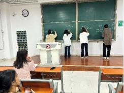 此次摸底检测的内容包括钢笔字和粉笔字书写两个环节,王渭清、王永奇和王应龙老师负责钢笔字摸底检测,李雅妮、张青飞和黄俏老师负责粉笔字摸底检测,学生完成作品后,测试老师对汉字书写的知识和技巧进行了点评指导。