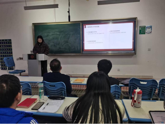11月17日19:00—21:00,我院中国现当代文学专业本学期首次研究生读书分享会在博文楼 712 教室举行。2024 级、2025 级近 20 名研究生参与活动,郭文元教授、张继红教授莅临指导,卢凯欣同学主持。