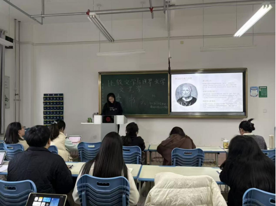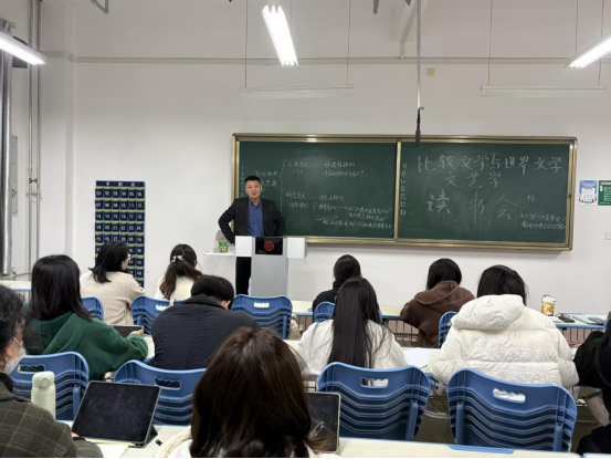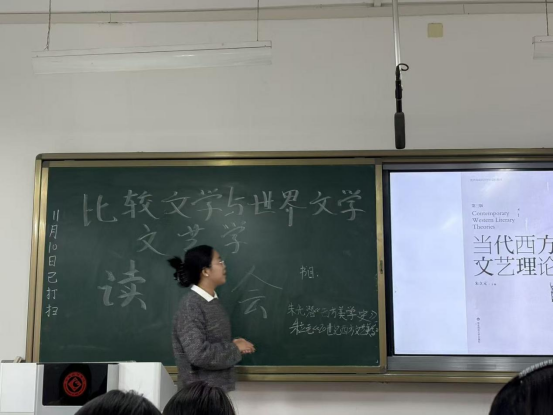 11月11日16:30-18:00,我院文艺学、比较文学与世界文学学科本学期首期研究生读书分享会在博文楼710教室举行。2024级、2025级近30名研究生参与活动,闫朝华老师莅临指导,李艳勤同学主持。