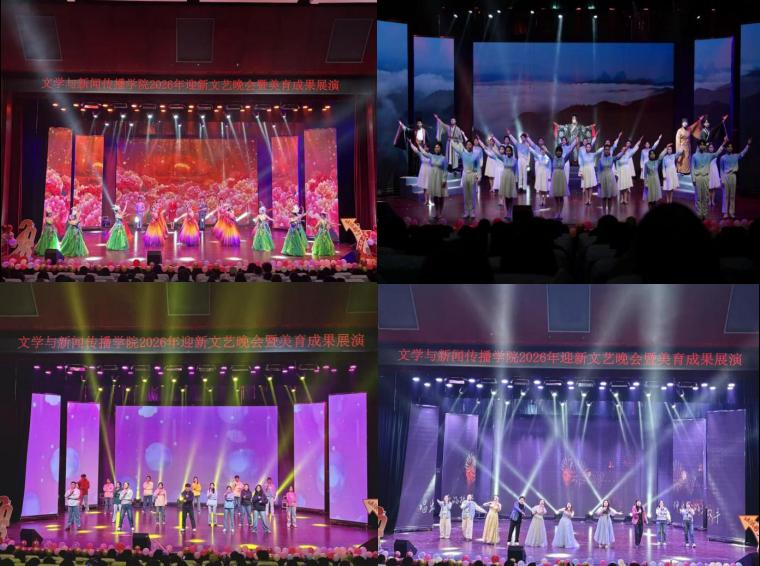 12月26日晚,文学与新闻传播学院在高新校区博文楼报告厅举办“文心载道传薪火,挺膺奋进启新程”2026年迎新文艺晚会暨美育成果展演活动。