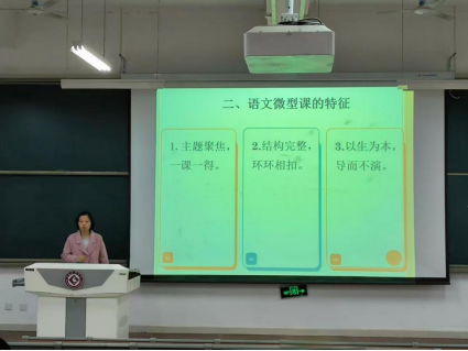 本次讲座由郑新丽副教授主讲,讲座以“如何上好一节语文微课”为题,结合自身微课的教学体会和近些年指导微课大赛的经验,从微课主题的选取、内容设计、环节把控、语言表达等多个维度进行了系统讲解,梳理了微课教学核心原则与设计技巧,并针对师范生在微课教学中易出现的问题提供了相应的解决方案。