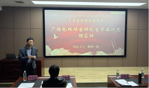 4月2日下午,广播电视专业硕士在博文楼1602、1402室举行2026届硕士研究生毕业论文预答辩会。答辩一组由文学与新闻传播学院院长孟改正教授、王宏昌副教授、余亚莉副教授、何艳萍副教授及西安工程大学新媒体艺术学院院长丛红艳教授组成,2026届硕士研究生张瑶、贾雨凡、毛俊博、闫佳琪、韦婧秋、刘俊淼参加答辩;答辩二组由郭勋亚教授、郑雅宁副教授、仵军智副教授及西安工程大学新媒体艺术学院副院长王晨仰副教授组成,2026届硕士研究生贺苗、殷佳榛、朱润、崔昊月、刘昕瑶参加答辩。2024、2025级戏剧与影视专业研究生到场观摩学习。