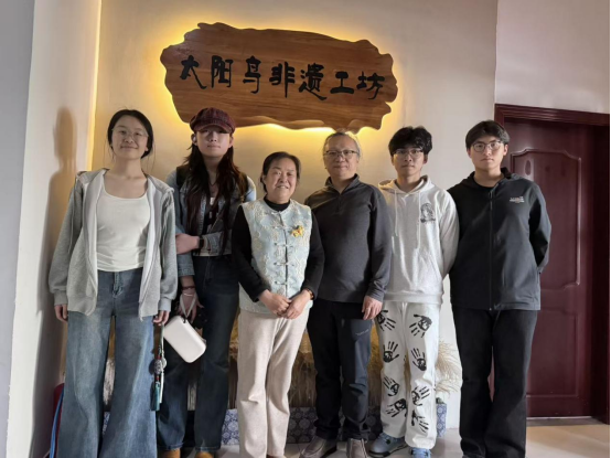 本次调研中,团队先后拜访李银惠、李慧莲等西秦刺绣非遗传承人,实地考察千阳县仟惠工艺品合作社与太阳鸟非遗工坊,系统梳理西秦刺绣的发展脉络与传承历程。在仟惠工艺品合作社,团队成员跟随传承人李银惠,深入了解近年来千阳刺绣在坚守传统工艺基础上,如何创新纹样设计与产品形态,了解了典型工艺品背后的文化内涵,调查了合作社使用电商平台销售、网络直播等方式销售非遗工艺品、传播西秦刺绣文化的现实困惑,探索高校与合作社非遗传承人合作的可能。随后,团队来到太阳鸟非遗工坊的展览馆观摩清代及民国以来的刺绣工艺品,了解了西秦刺绣的发展历史,非遗传承人李慧莲展示了最近一批订单的图案,这从造型、色彩搭配、工艺手法上启发了团队成员,为团队创新赛的项目改进提供了思路。团队邀请了两位非遗传承人作为创新大赛项目的业界导师。