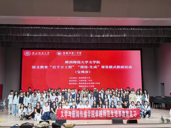 4月28日,由陕西师范大学文学院主办、宝鸡市第一中学承办,陕西省曹公奇名师工作室、谭新玲语文工作坊协办的中学语文“预设—生成”课堂模式教研活动,在宝鸡市第一中学高新校区举行。我院231名师生在院长孟改正、副院长赵保胜带领下,参与了此次活动。